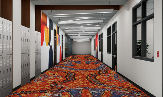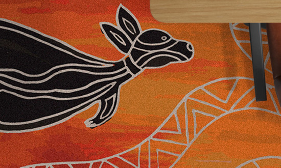 Big Red signifies the wildlife escaping the scorching lands as the fires come through. Available exclusively through Dreamtime Flooring. Artwork credit: Sam Walker-Wilson, BYNM Indigenous designs.