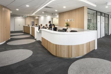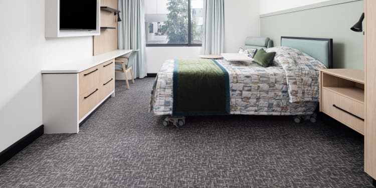 Patient comfort is a top priority in healthcare and senior living facilities. Soft flooring, particularly cushion-backed carpet tiles work to enhance underfoot comfort. Our cushion backed carpet tiles made with our Enviro Bac Plus® can be strategically placed in common areas like waiting spaces and other 'dry zones' to provide a welcoming and comforting environment for patients and visitors.