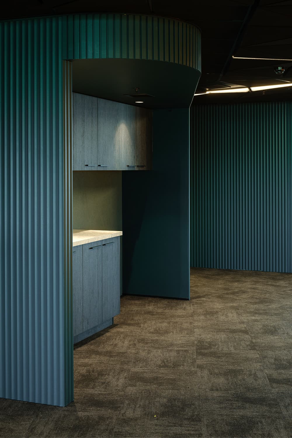 Crafted from renewable, biodegradable New Zealand wool fibre, the tiles are PVC-free, Red List-free, and Green Star Level 4 certified. They also offer high acoustic and thermal performance, contributing to indoor comfort while reinforcing energy efficiency. The modular format allows for easy replacement, ideal for a long-life civic building.