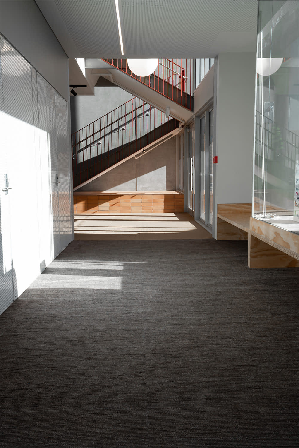 The use of colour psychology in the flooring design was thoughtfully considered. Colours have a significant impact on human emotions and behaviour. In an educational setting they can influence students' moods, focus, and productivity. GH Commercial's approach involved incorporating specific colours to evoke feelings of creativity and collaboration in certain areas, while opting for different hues to promote calmness and focused individual learning in other spaces.