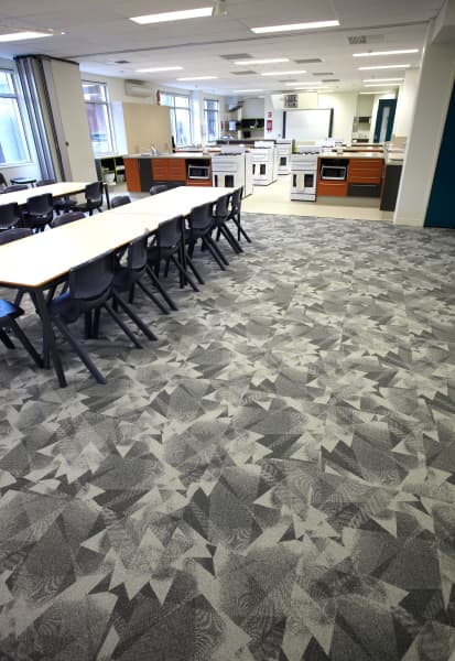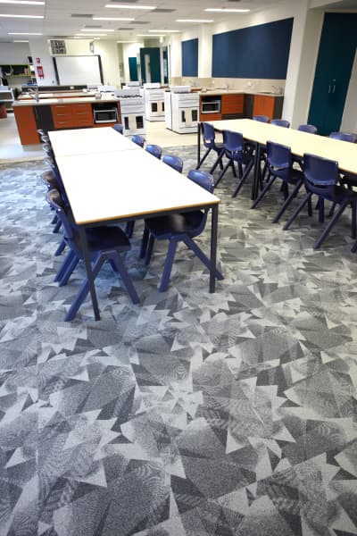 Product(s): Axiom Carpet Tiles (Year 12 building), Integrity Carpet Tiles (Music School and Classrooms) and Matrix Carpet Tiles (Food Technology Classroom)