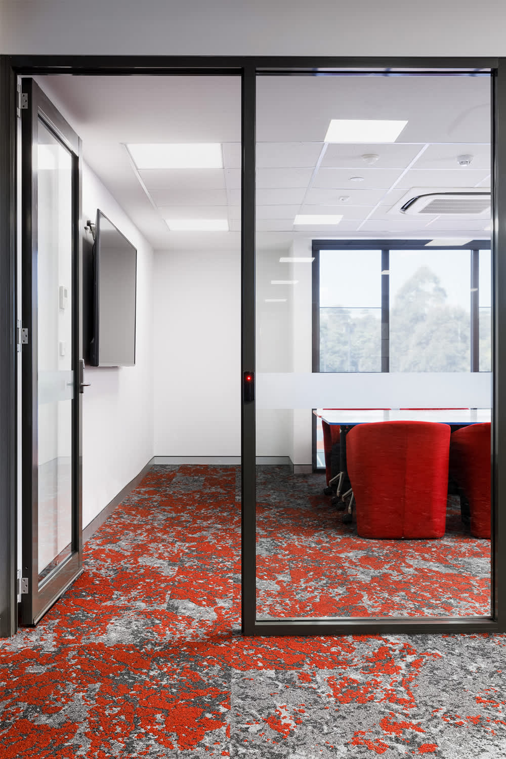 The selection of Macro and Micro Bloom 1.5, in 937 Frosted Shield and Groundcover in 949 Rock Face, dispersed with graduating pops of colour with 963 Firedot and 975 Felt Finish, signals discrete learning zones and pathways throughout the Barker College upgrade, creating a vibrant and energetic space.