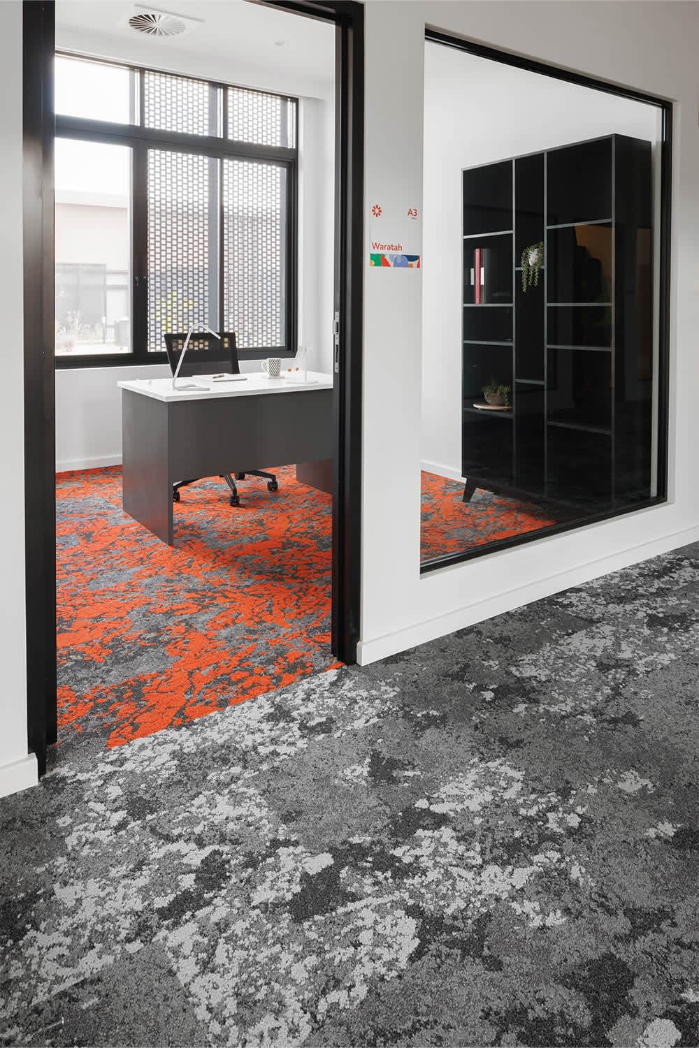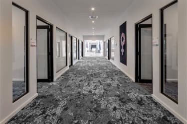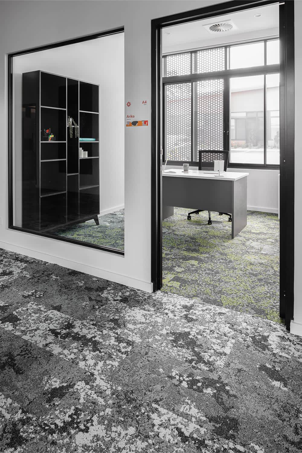 Lichen 1.5 carpet planks are utilised throughout the office spaces, therapy rooms, counselling rooms, meeting rooms, accommodation rooms, quiet rooms, and caretaker accommodation. Therapists and administration staff were able to select individual colours for their workspaces to tailor to their own individual preference whilst still feeling part of the overall design. The use of carpet planks was well suited for these spaces are they can be easily replaced is necessary and are hard wearing which was an essential element of the design brief. The Lichen 1.5 collection is inspired by assemblages of multi-hued, multi-textured lichens and their regenerative role in our ecosystem and features a range of large blooms of concentrated colour accompanied by accompanying products with more subdued colour and base palettes.