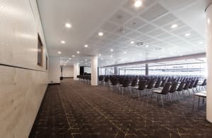 Adhering to the project budget was key. Design concepts evolved throughout and were enhanced and optimised while maintaining a fixed bottom line. Godfrey Hirst’s large range of flooring products allowed the budget to be adhered to while maximising the product specification in high impact areas such as the main function room, locker rooms and lounges and recovered those costs with cost effective, hard-wearing carpet tiles in corridors, media and administration areas.